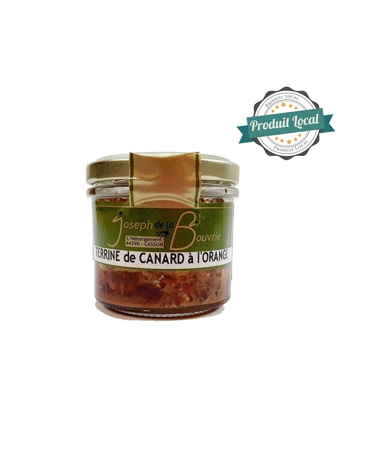 Ingrédients: Canard 40% (France), porc (France), foies de volaille (France), œufs plein air (France), oignons, oranges confites, alcool, sel de Guérande, poivre, (traces de sulfites).