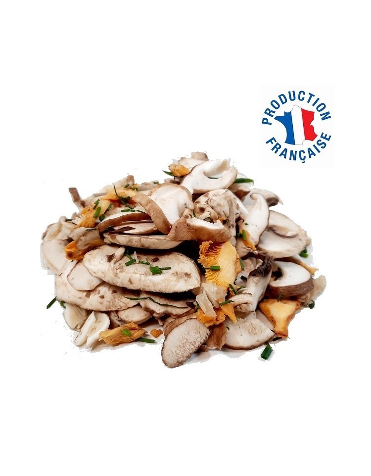 Particularité: Mélange prêt à cuire de Champignons bruns de Paris, girolles, shii-také, pleurotes, ciboulette